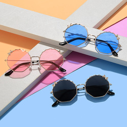 Versión Coreana de las nuevas gafas de sol para niños con lazo de Metal, gafas poligonales para niños y niñas, protección solar, bonitas gafas de caramelo