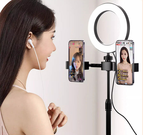 듀얼 폰 홀더가 있는 LED 링 필 라이트 램프