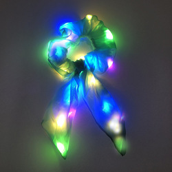 여자 라이트 업 헤어 리본 Scrunchies LED 빛나는 토끼 토끼 귀 포니 테일 홀더 빛나는 네온 파티 용품
